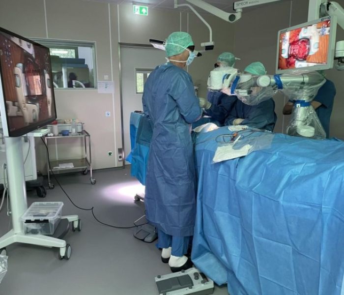 Mit den digitalen Bildfeatures des Aesculap Aeos können alle beteiligten Personen dasselbe Bild sehen. Dadurch wird die Kommunikation zwischen Chirurgen, Assistenzteam und anderen Beteiligten erheblich verbessert. Alle können auf dem gleichen Stand sein und gemeinsam Entscheidungen treffen, was zu einer verbesserten Patientenversorgung führt. Diese Funktion ermöglicht eine effiziente und präzise Zusammenarbeit während der Operation.