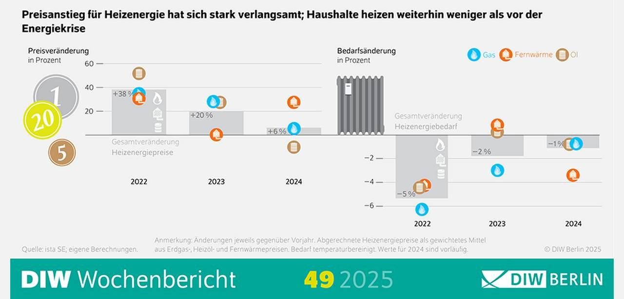 DIW Berechnungen zeigen Heizenergiekosten 2024 moderat um sechs Prozent
