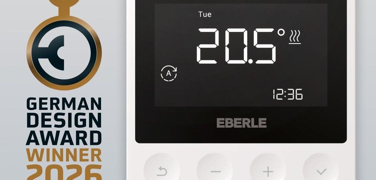 EBERLE Controls präsentierte mit dem ATR 4000 einen eleganten digitalen Aufputz-Temperaturregler, der den German Design Award 2026 als Gewinner in der Kategorie „Excellent Product Design – Building and Elements“ erhielt. Die Jury schätzte die ideale Balance zwischen schlichter Ästhetik und praktischer Bedienbarkeit. Kombiniert werden intuitive Einstellungsmöglichkeiten, ein kontrastreiches Display und energiesparende Heizungsregelung. So bietet der ATR 4000 maximale Effizienz und Komfort in modernen Gebäuden zuverlässig, pflegeleicht, langlebig und innovativ entwickelt.