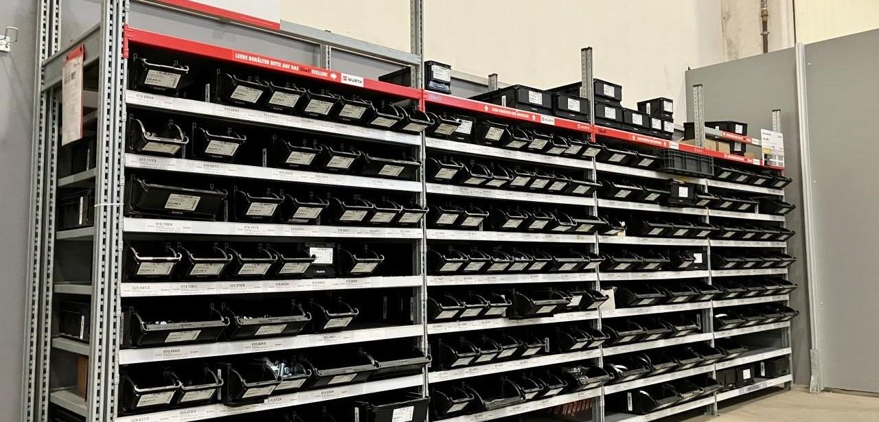 Schrauben, Muttern sowie spezielle Bauteile spielen für Kannegiesser eine unverzichtbare Rolle im Produktionsalltag. Bedingt durch geringe Einzelpreise und ungleichmäßige Verbrauchsmuster entsteht im Einkauf ein hoher administrativer Aufwand. Würth Industrie Service etabliert eine automatisierte Kanban-Logistik, um diesen Prozess zu vereinfachen. Sieben Werke – verteilt auf Vlotho, Sarstedt, Kalletal, Hoya, Aue-Bad Schlema, Augsburg und Banbury – erhalten passgenaue Materialzufuhr. So entfallen wiederkehrende manuelle Bestellungen und mögliche Fehlerquellen werden konsequent eliminiert, effizient und zuverlässig.