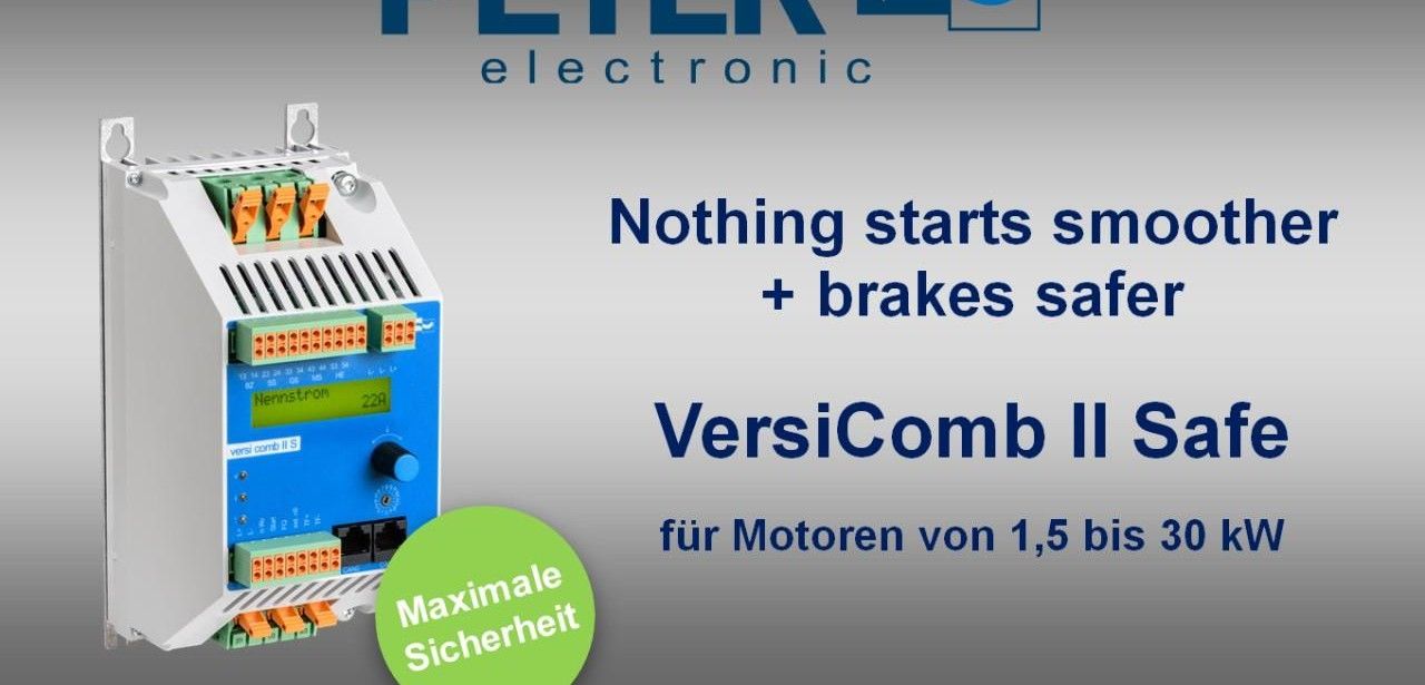 Die VersiComb II Safe kombiniert Motorstart und Bremsvorgang in einem kompakten Gerät mit IP20-Schutz und Push-in-Klemmen. Sie ist TÜV-zertifiziert gemäß EN 13849-1 (PL c) und EN 61508 (SIL 1) und verfügt über integrierten Stillstandsmelder und Sammelstörungsrelais. Der adaptive Soft Starter optimiert Anlauframpen automatisch, die Gleichstrombremse gewährleistet kurze Bremszeiten. Umfangreiche Motorschutzfunktionen, Überwachung von Temperatur, Strom und Drehzahl sowie flexible Parametrierung per CANopen oder Bedienteil sichern zuverlässigen Betrieb. Energieeffizienz und Anlagenverfügbarkeit steigern.