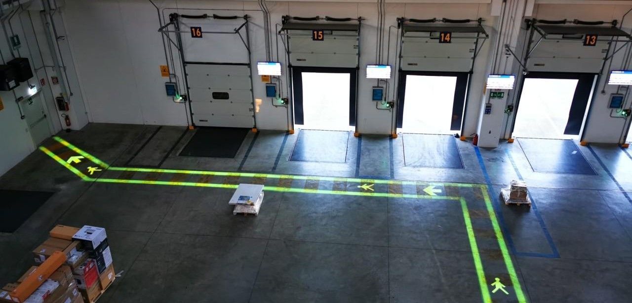 Adaptive und flexible Bodenmarkierungen mittels LED-Projektion erhöhen Arbeitssicherheit deutlich