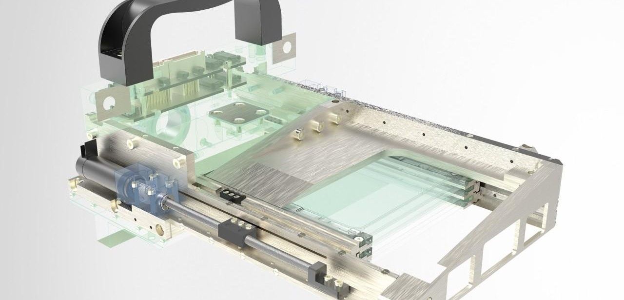 Die Kooperation von Steinmeyer-Gruppe und Feinmess Suhl hat ein winziges DUV-Polarisationsfilter entwickelt, das mit Abmessungen von 120 × 180 × 31 mm drei separat steuerbare Filtereinheiten auf 75 mm Hub kombiniert. Elektrisch kommutierte DC-Motoren fahren trockengleitende Edelstahl-PEEK-Gleitgewindespindeln für 1,5 µm Positioniergenauigkeit. Stickstoffinertisierung und wartungsfreier Dauerbetrieb ermöglichen 24/7-Einsatz ohne Schmierstoffbedarf, während die Partikelkonzentration im Reinraum dauerhaft minimal bleibt. Die Konstruktion nutzt Gewinderollen-Kaltumformung, Klasse-6-Reinraumfertigung und Klasse-1-Reinigung für höchste Oberflächengüte, minimale Ausgasung.